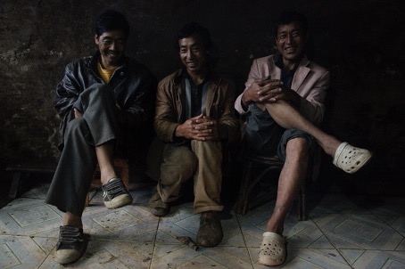 There are three middle-aged men sitting on low stools, their smiles are curiously satisfied. To us the resplendent smiles are absolutely strange. What are they satisfied with? They are satisfied with existence, which in their sense of being they know to be a great boon. I am certain though, that their poor lives are full of trials. Yet, their faces show happiness of an origin other than sensuality or materialism. Bérengère seizes the Zen of the moment. The smiles contain eternity. The satisfaction is the opposite of reification: they sense the divine quality in time, as it seeps into consciousness and their eyes reflect it.